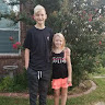 It's going to be a person wearing dark blue hoodie with cartoon logo on front and black sweatpants.