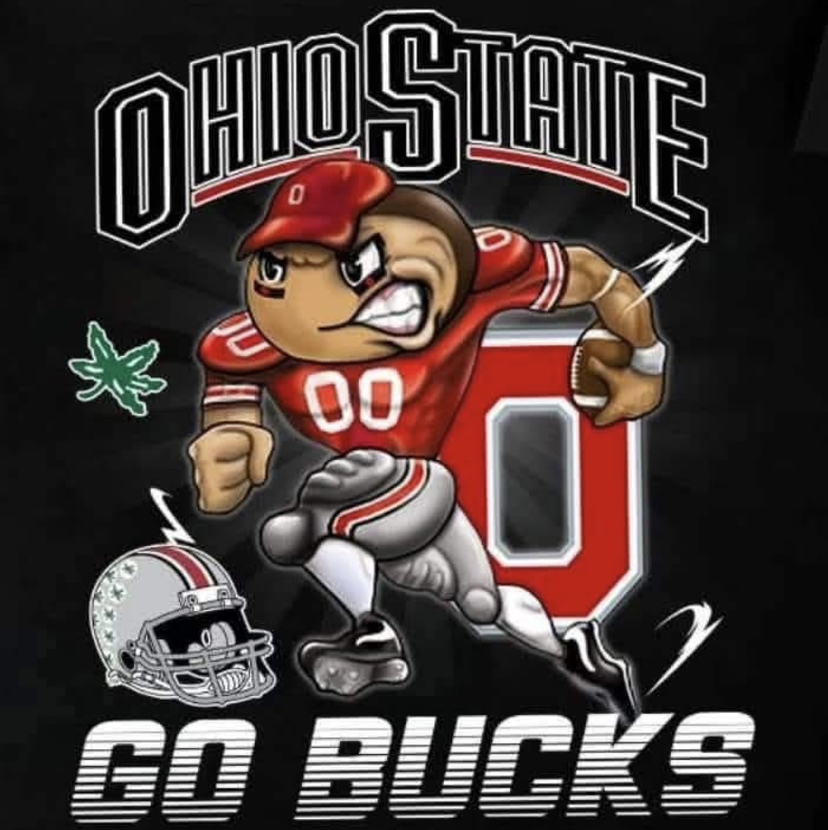 Red hat, black coat, and black pants.